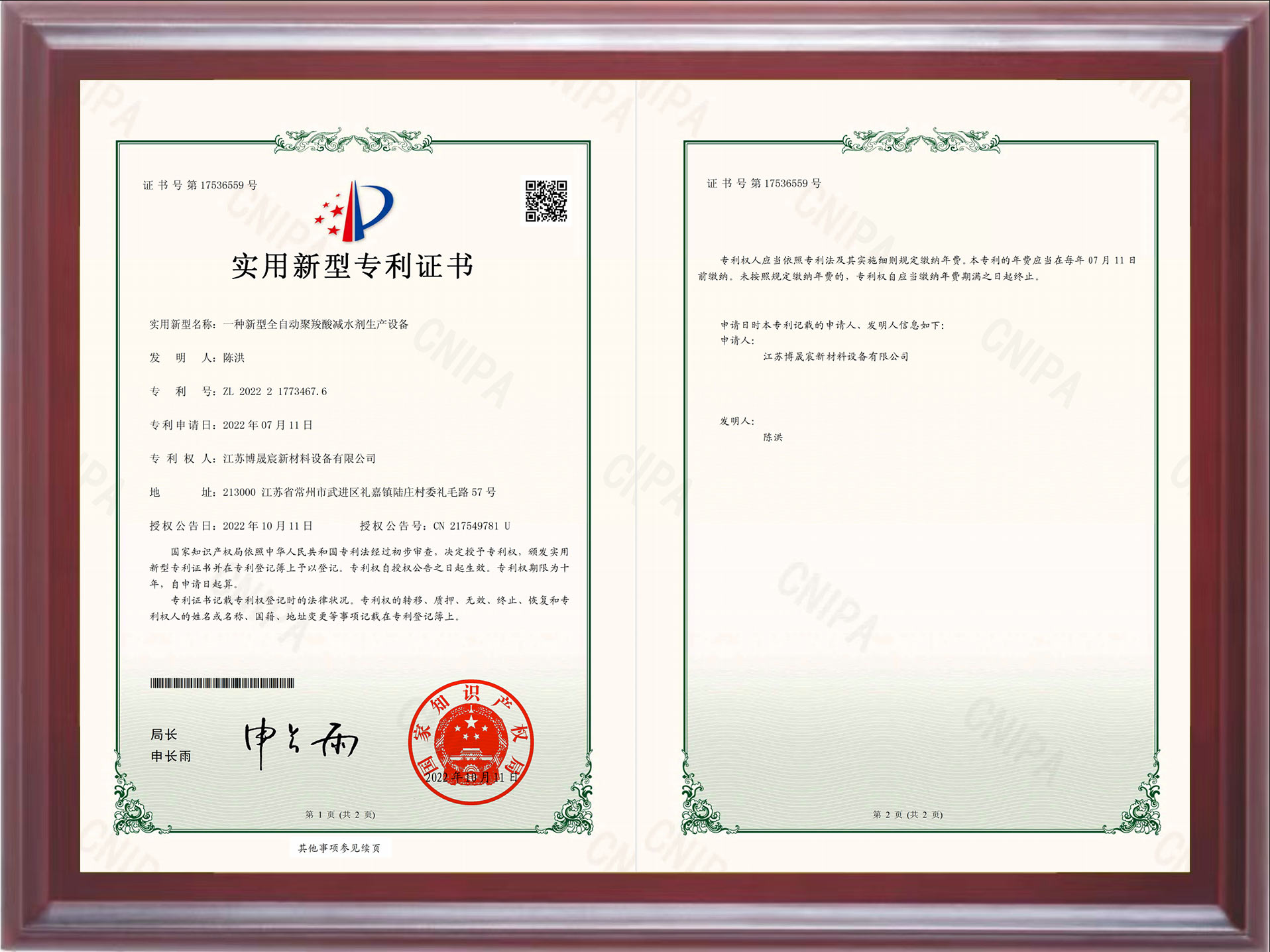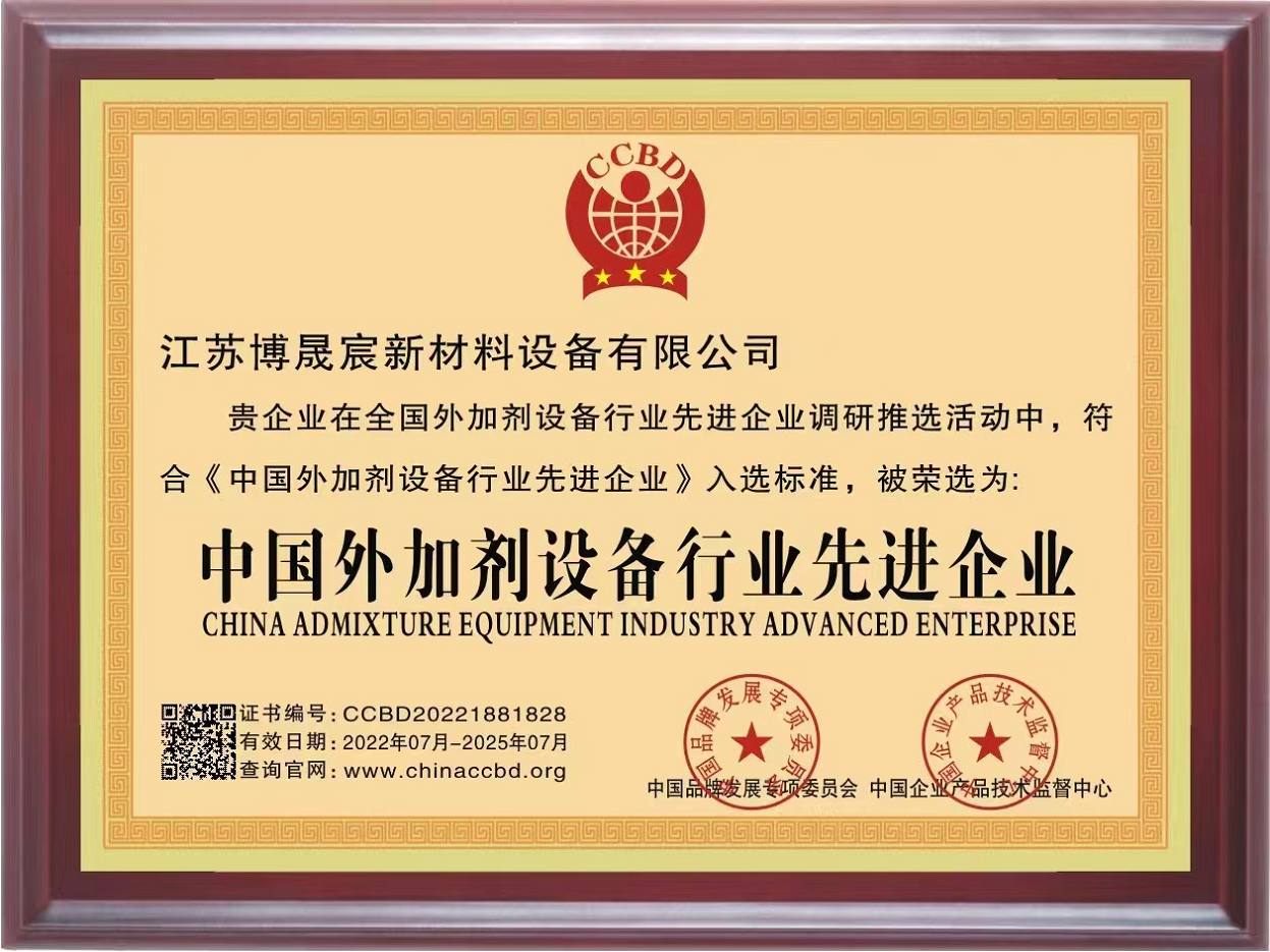 江蘇博晟宸新材料設備有限公司(以下簡稱博晟宸)專注于混凝土外加劑生產設備的研發(fā)與制造!我們秉承“誠信經營,用心服務”的企業(yè)宗旨,竭誠為您提供優(yōu)質的產品和滿意的服務!我們注重細節(jié),不斷創(chuàng)新,實現(xiàn)合成復配設備智能化,一機多用。竭盡全力為客戶節(jié)省成本,免費提供建廠方案的指導,免費提供生產配方,免費提供技術支持!